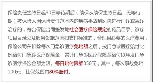 泰康人寿门急诊医疗险,只有疾病/意外门诊医疗保障,保障比较纯粹,性价比相对较高。不足之处是报销额度只有80%,而闪赔的额度也比较小,只有500元。 此外,泰康门急诊医疗险还有一个版本是捆绑重疾险出售的,两者的差别就是有没有住院津贴。提醒一下,大家没有必要,为了购买门诊险而购买重疾险哈~