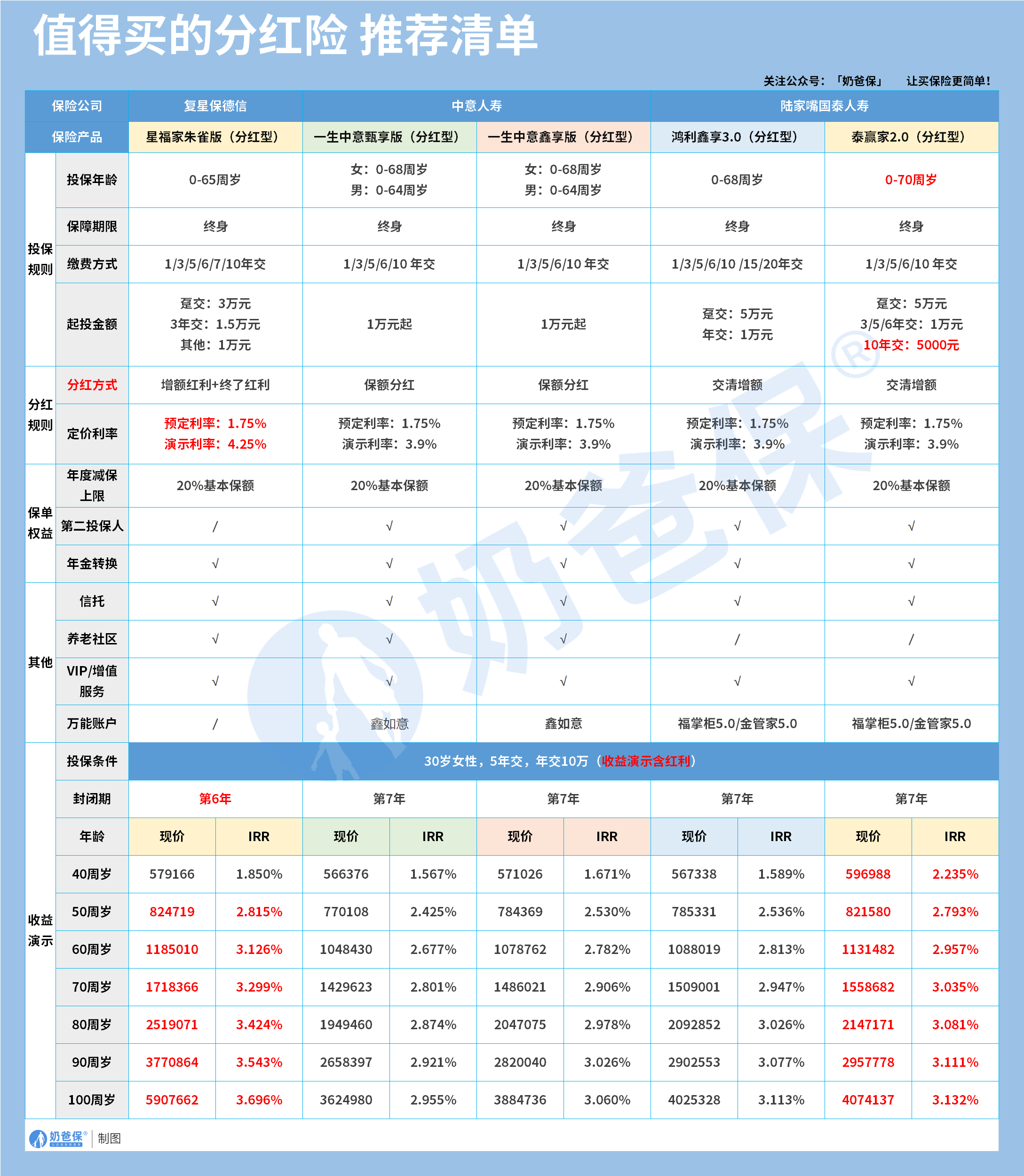 而且考虑到它大概率即将下架,我也给大家整理了5款同类型热门分红险: