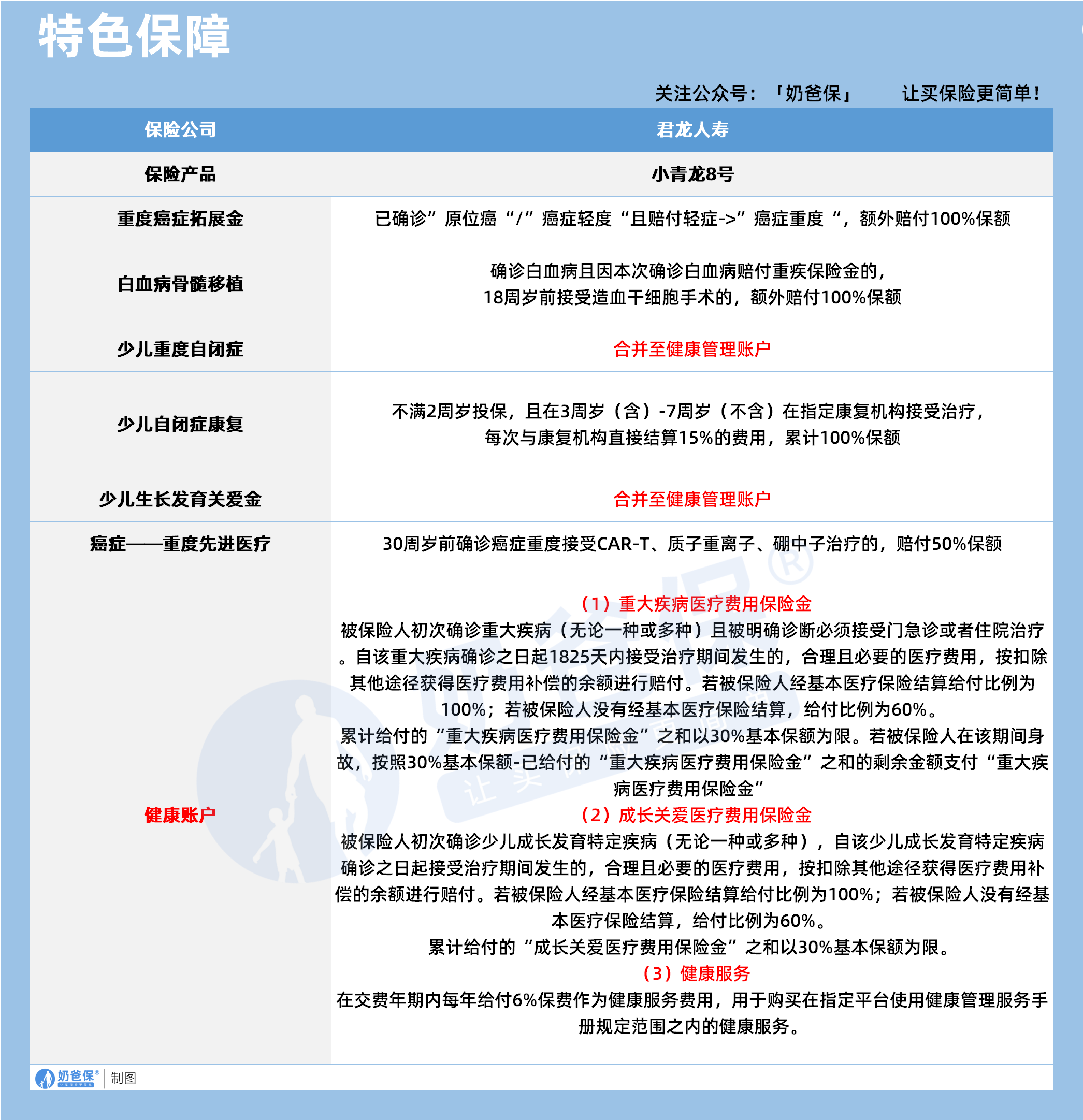 整体来看,小青龙8号是一款定位清晰、优势突出的少儿重疾险,