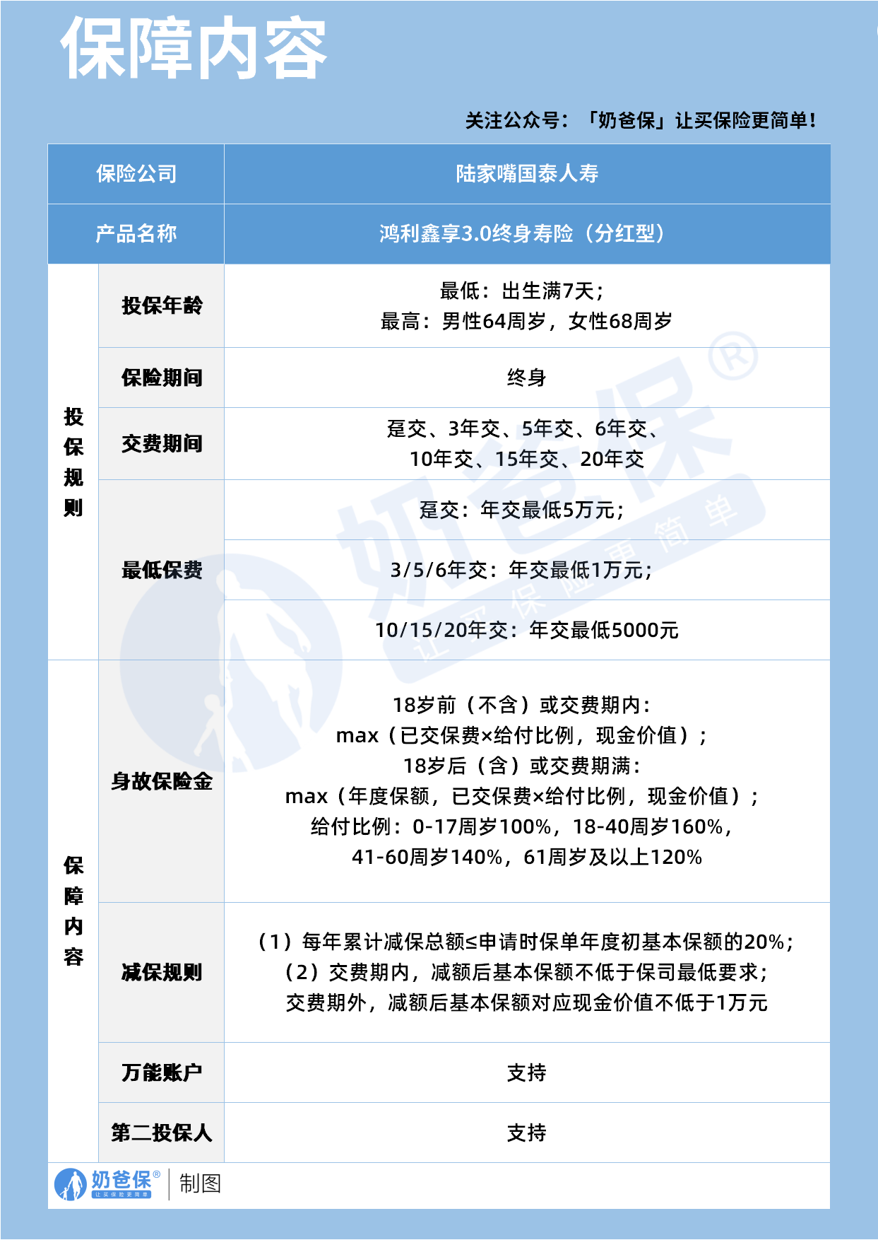 陆家嘴国泰鸿利鑫享 3.0 终身寿险是陆家嘴国泰人寿推出的分红型增额终身寿险。
