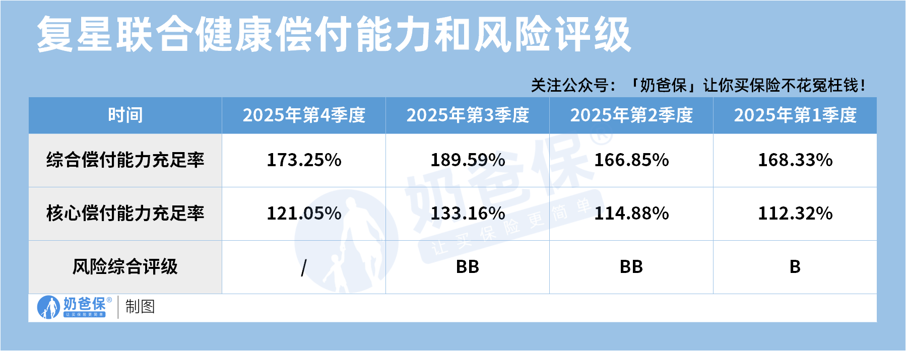 复星联合健康在2025年第一季度获评B级,第二、第三季度均获评BB级,评级表现稳定向好,进一步印证了公司良好的风险管控能力和经营稳定性,让消费者在选择其产品时更有底气。