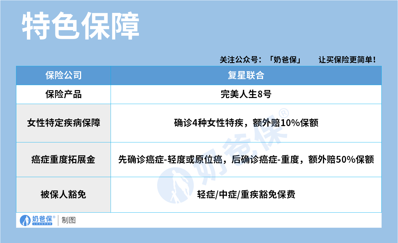 在特色保障部分,完美人生8号的设计充分考虑了女性的保障需求。