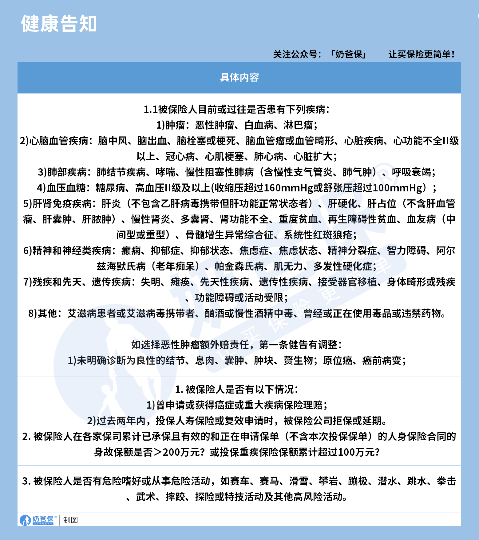 投保经历、高风险运动和既往病史。