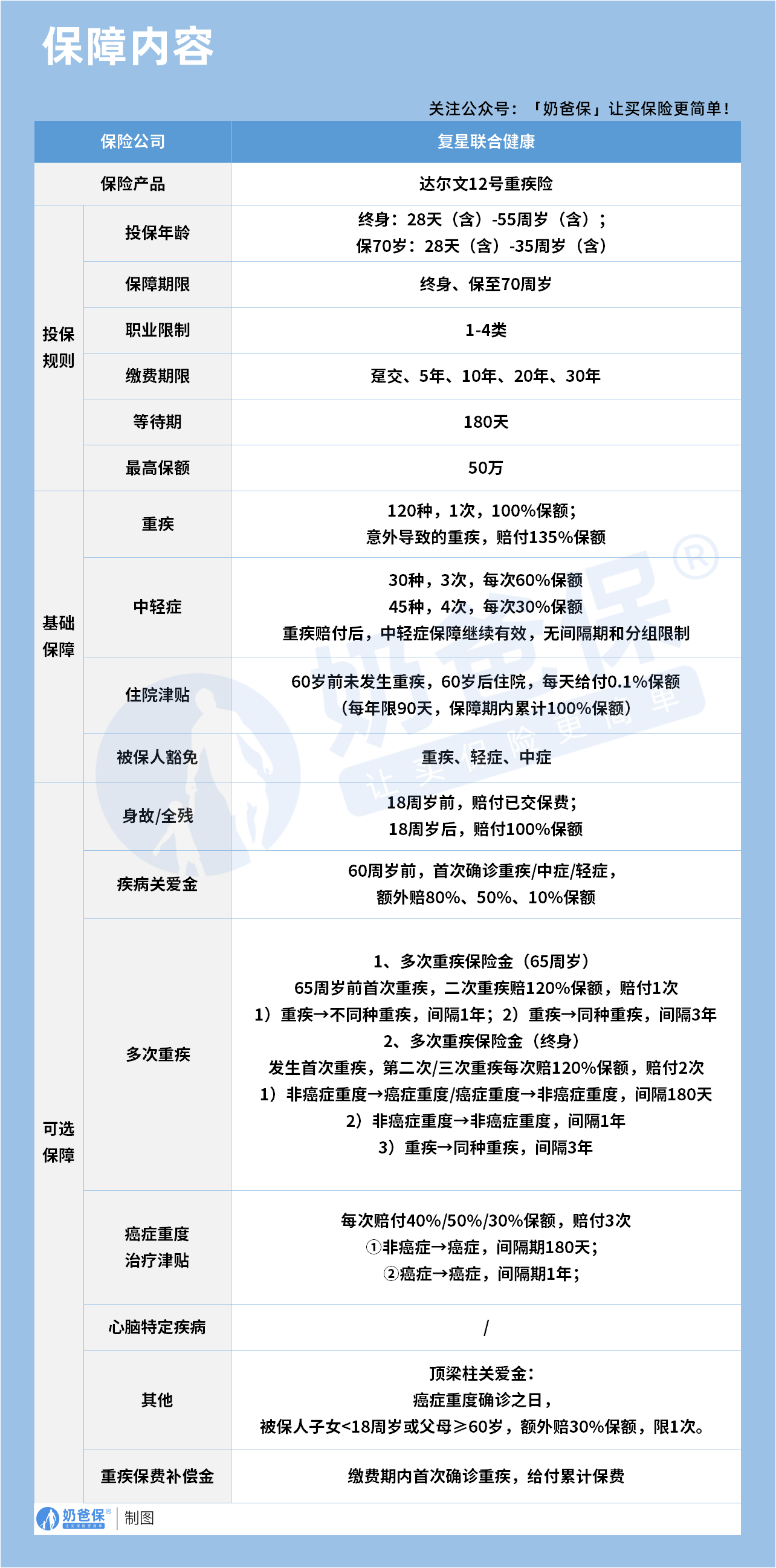 需要明确的是,达尔文12号只是目前市场上的产品举例,未来十几年后,保险市场会有更多更适合当时需求的产品,孩子到时候可以结合自己的身体状况经济情况保障需求选择,不用现在就为未来的保障问题焦虑。