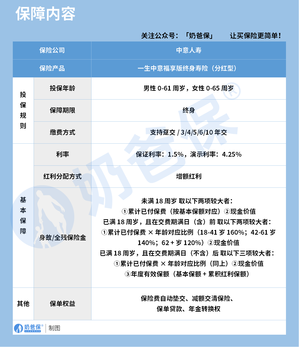 保障层面,它的核心是身故/全残保障,规则设计很贴合不同年龄段的风险需求。