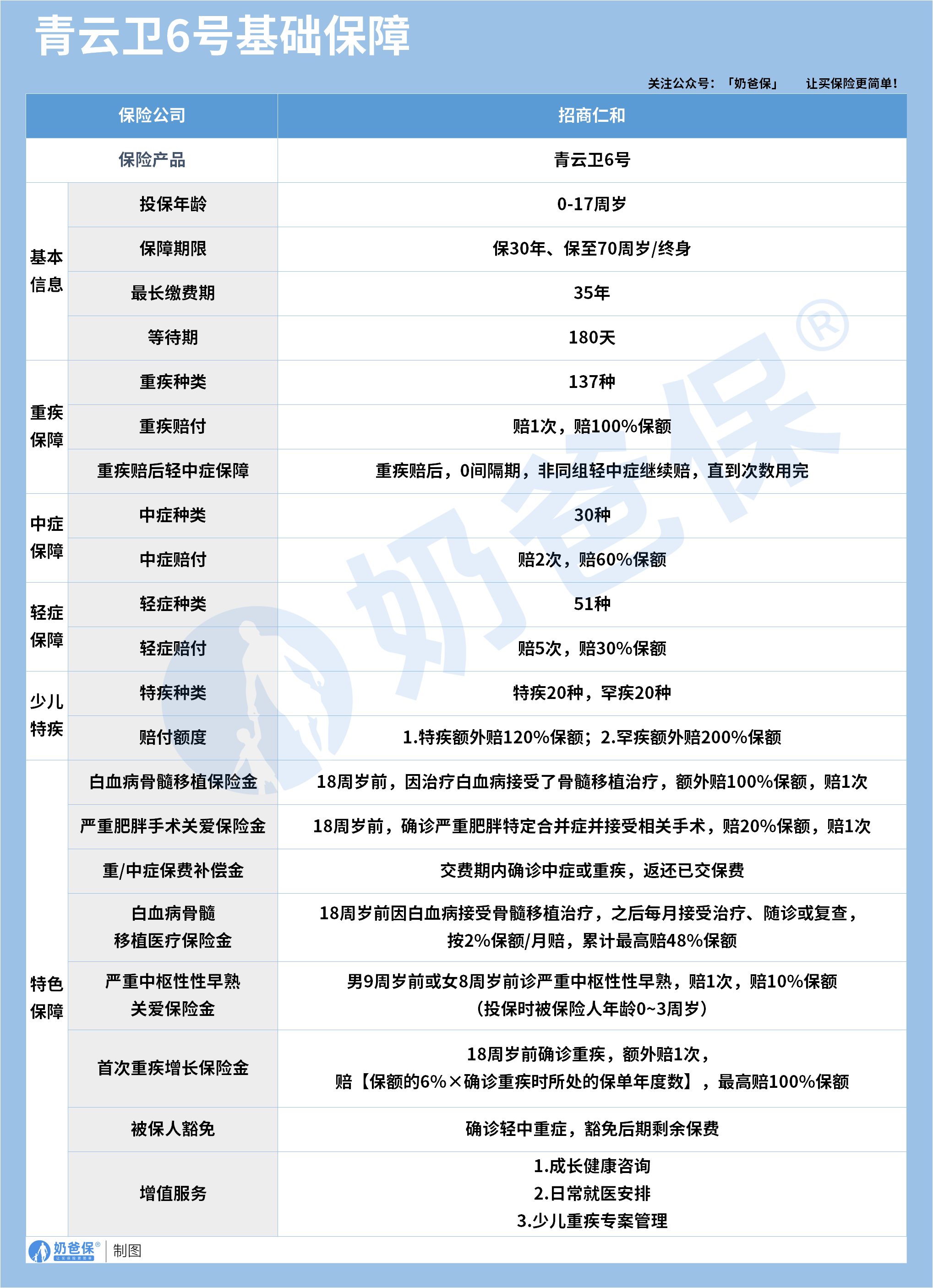 今天,奶爸就以当下热门的少儿重疾险——青云卫6号为例,
