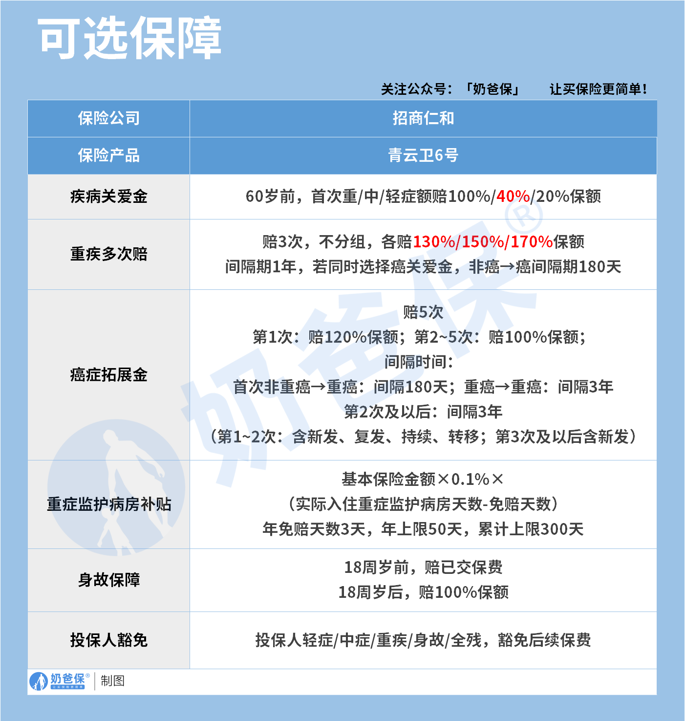 青云卫6号的基础保障是必选的,包含了全面的重疾中症轻症保障。