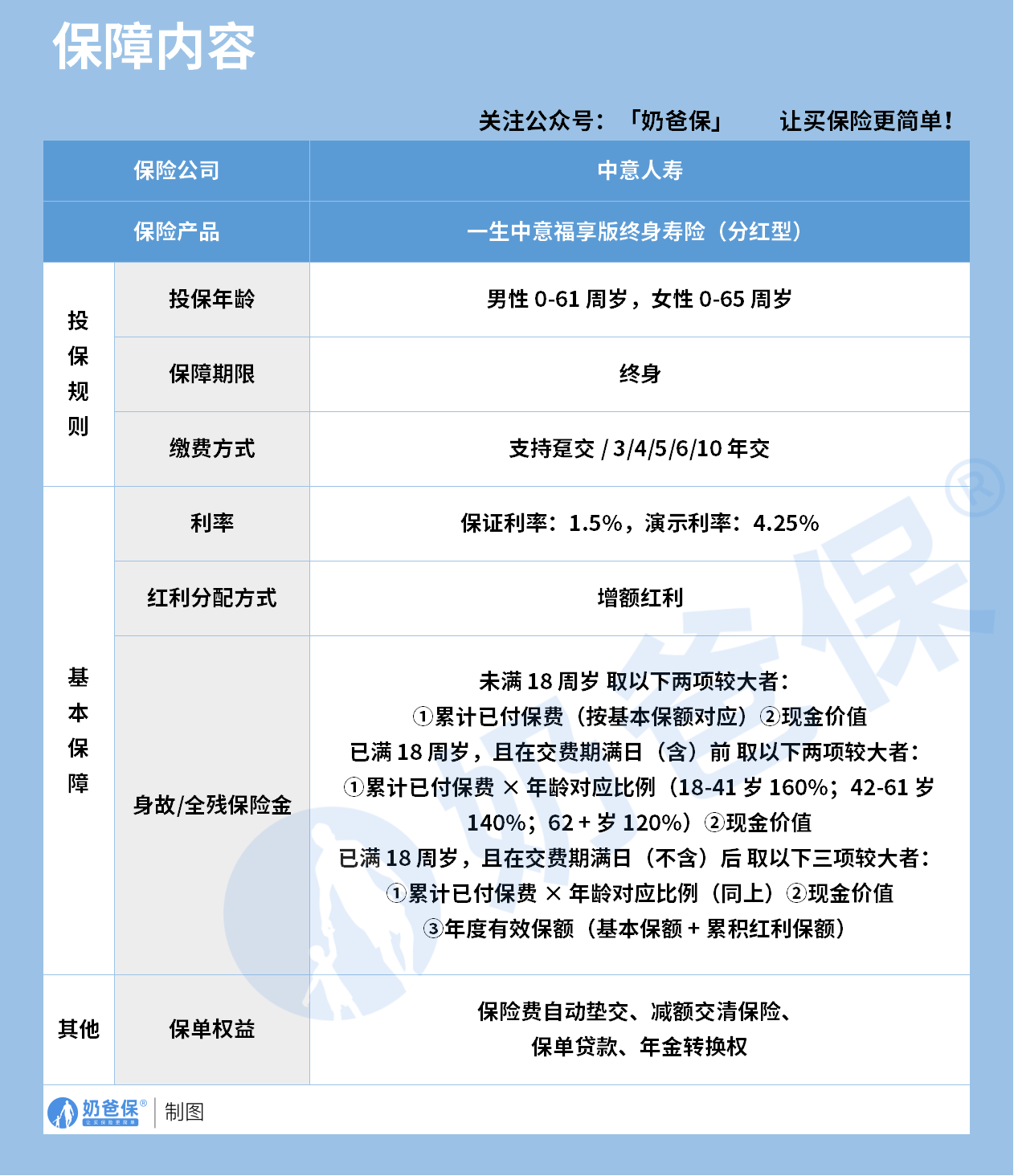 产品的增额比例为1.5%,演示利率为4.25%,分红分配方式为增额红利。