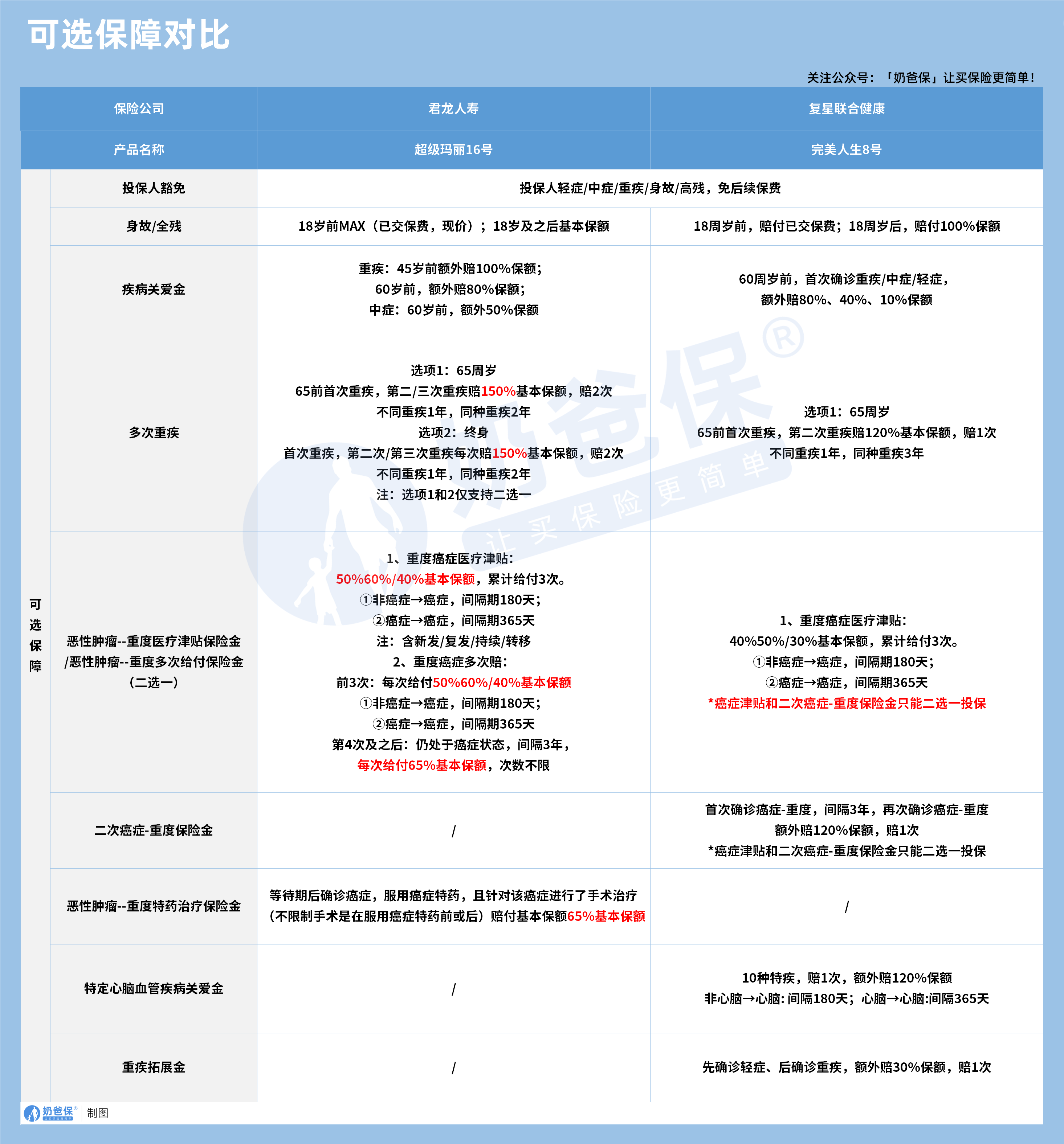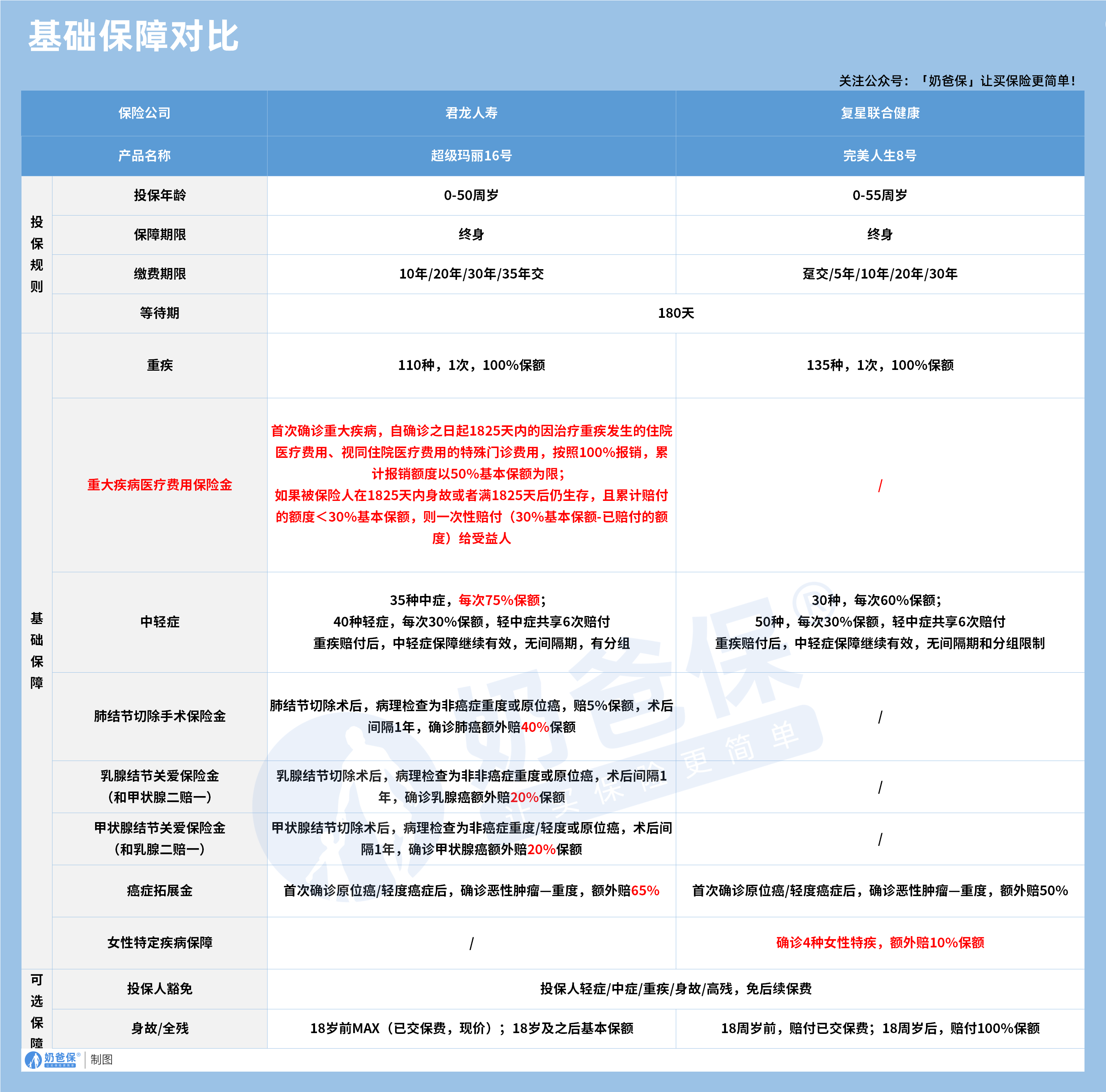 差异主要在一些罕见病上,对大多数人来说,两款的重疾基础保障都足够用。