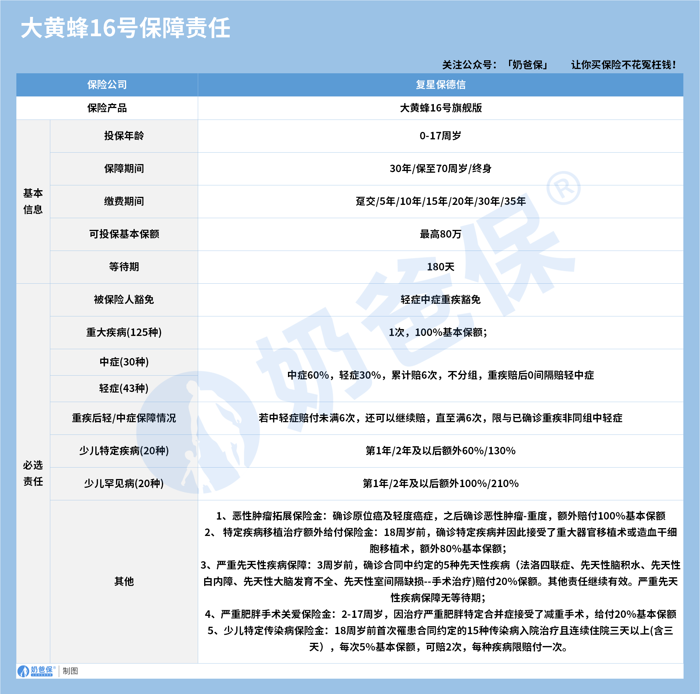 很多同类产品仅豁免轻症中症,大黄蜂16号旗舰版的重疾豁免更具优势。