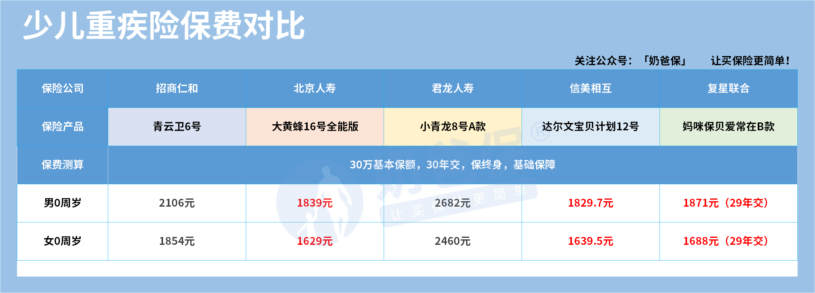 仅基础保障为测算标准,对比市场上主流的少儿重疾险产品。