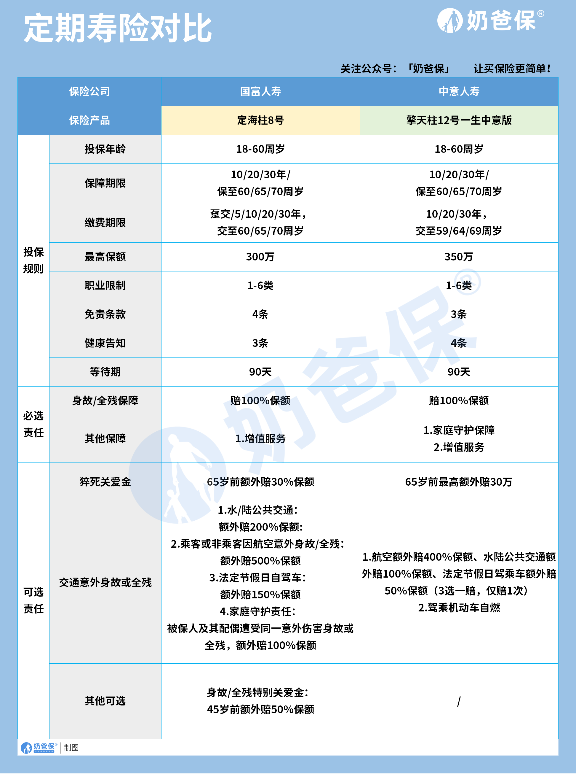 定海柱8号和擎天柱12号一生中意版,都是目前市场上表现不错的定期寿险产品,但两者的定位和优势各有不同,没有绝对的好坏,只有是否适合自己。