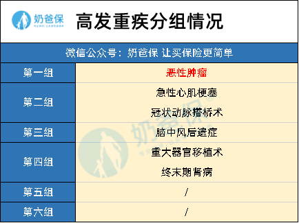 既然是分组多次赔付的重疾险,那么我们就必不可少的需要注意高发重疾的分组情况: