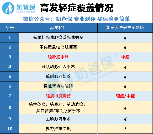 高发的轻症基本都有覆盖,像轻微脑中风是归到中症的保障上,是有60%保额的赔付的。
