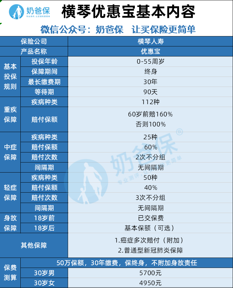 奶爸再详细分析一下横琴人寿优惠宝重疾险的特点: